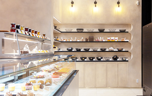 仙台南町通にあるkazunori ikedaの第一号店。2011年12月にオープン。店内にはお買い求めいただいたケーキやドリンクをお召し上がりいただける、サロンを併設しております。